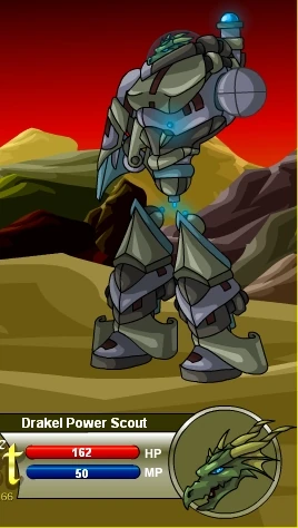 The apex of Drakel war technology. Watch out! But, this one seems to just be a scout. Its armor is not as strong as the higher level Drakel Power Armor.