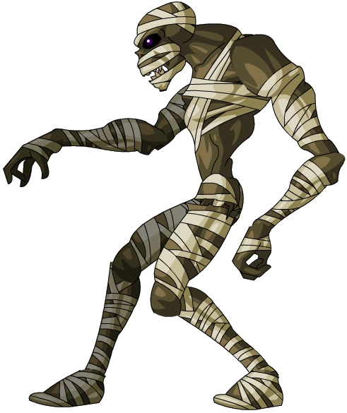 When hit with its Ranged attack, you can be entangled in the bandages*. This skips your turn, and allows the Mummy to attack again. You get two Saving Rolls to avoid this - one based on your DEX**, and one based on your STR***.