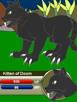 | When transporting a shipment of pets, Aria dropped a crate from her wagon; inside was a small black cat. Adopted by Safiria, it was trained to hunt beings of darkness and light. Often seen preying on BURPS at Willow Creek Farm, and adventurers such as you! So terribly cute, it hurts...a lot.