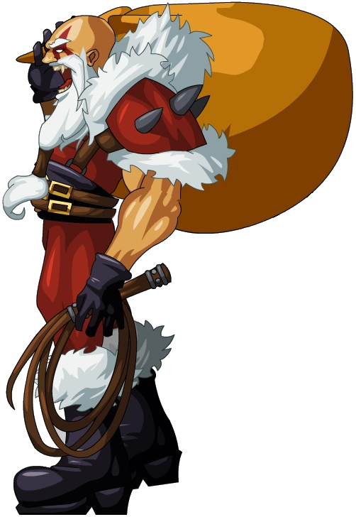 He also uses a collection of several weapons, including whips, his stolen gift sacks, ice swords, the slaying bells of Ni'Kolai the Red, and others .