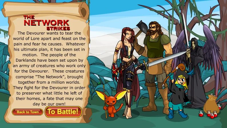 The Devourer wants to tear the world of Lore apart and feast on the pain and fear he causes. Whatever his ultimate plan, it has been set in motion. The people of the Darklands have been set upon by an army of creatures who work only for the Devourer. These creatures comprise "The Network", brought together from a million worlds. They fight for the Devourer in order to preserver what little he left of their homes, a fate that may one day be our own.