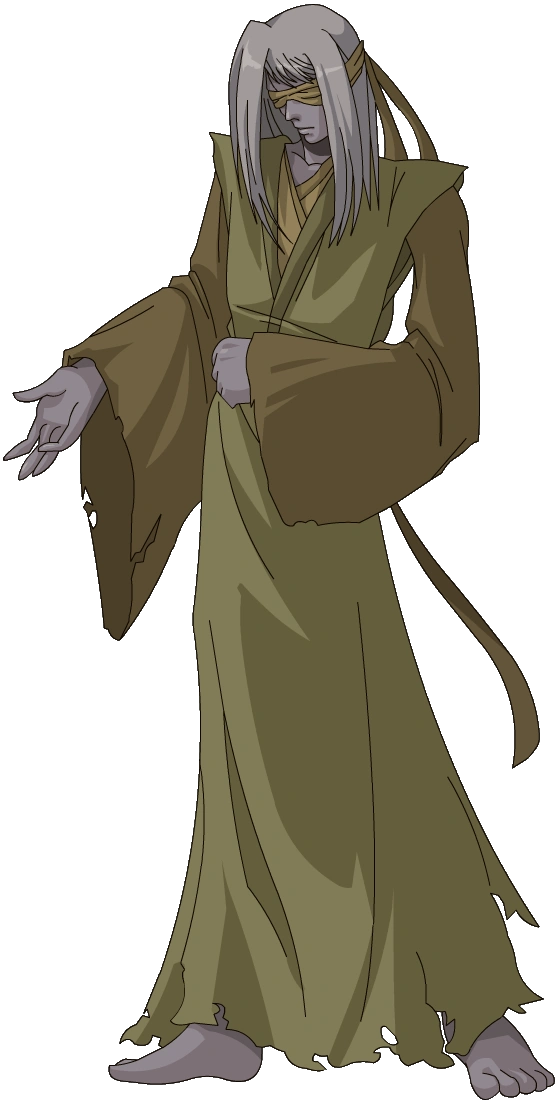 Though he does not look like it, Uldor is a frail man of advanced age with gray hair and skin. A fold, of the same colour as his robes, covers his eyes.